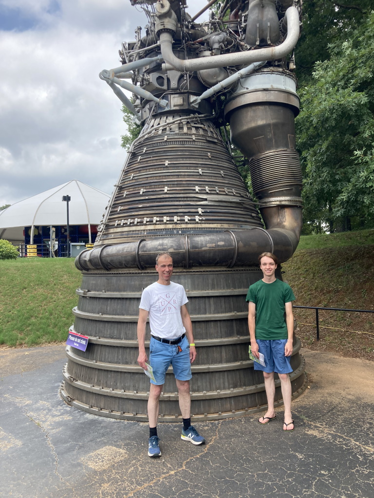 More recently, Joe and I were joined on our quest by Nils van den Heuvel, who hails from the Netherlands. Nils is hard at work creating a gate-and-register-level implementation of our 4-bit computer in an FPGA. A couple of weeks ago, Nils and his son came to America for a father-son road trip. As part of this, they visited me in Huntsville, Alabama, and we all went to the US Space and Rocket Center.