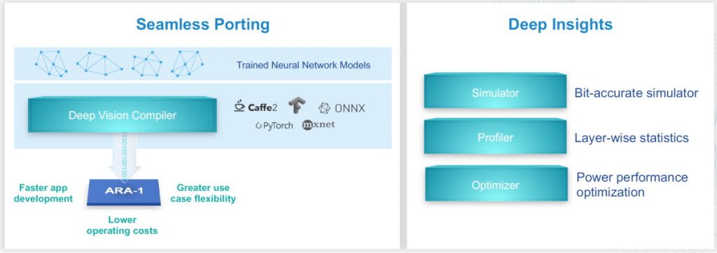 As illustrated in the image below, Deep Vision’s software-centric approach facilitates the seamless porting of trained neural network models while also providing deep insights.