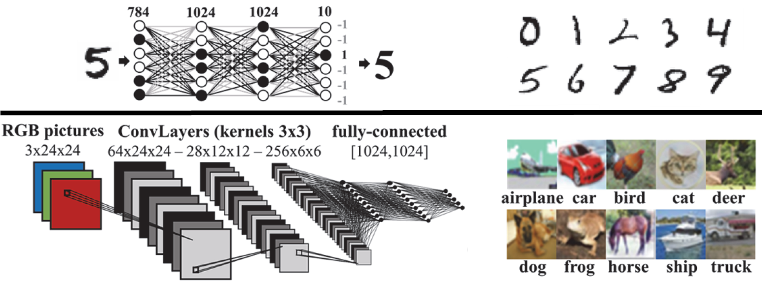 With this, they were able to achieve recognition rates of 97.3% on MNIST using a 6-bit training/2-bit inference implementation and 88% on CIFAR-10 with 7 bits/2 bits.