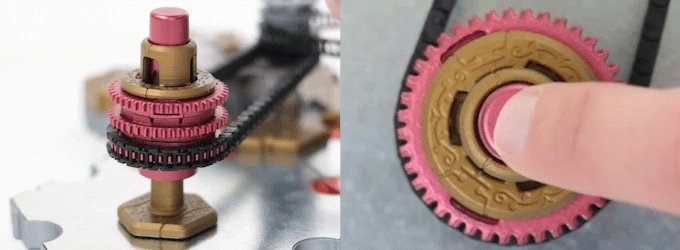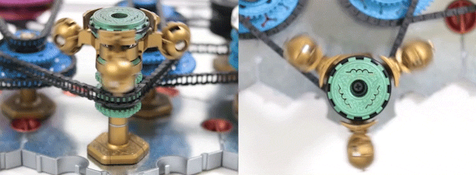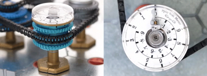 Let’s take a brief spin (no pun intended) through the spintronic components, not least that I LOVE Paul and Alyssa’s animated images. Let’s start with the spintronic battery, which powers your spintronic circuits. You charge the battery by pulling the string. The battery pushes the chain with a constant force (voltage), while a built-in mechanical circuit breaker automatically shuts it off in the event of a short circuit.