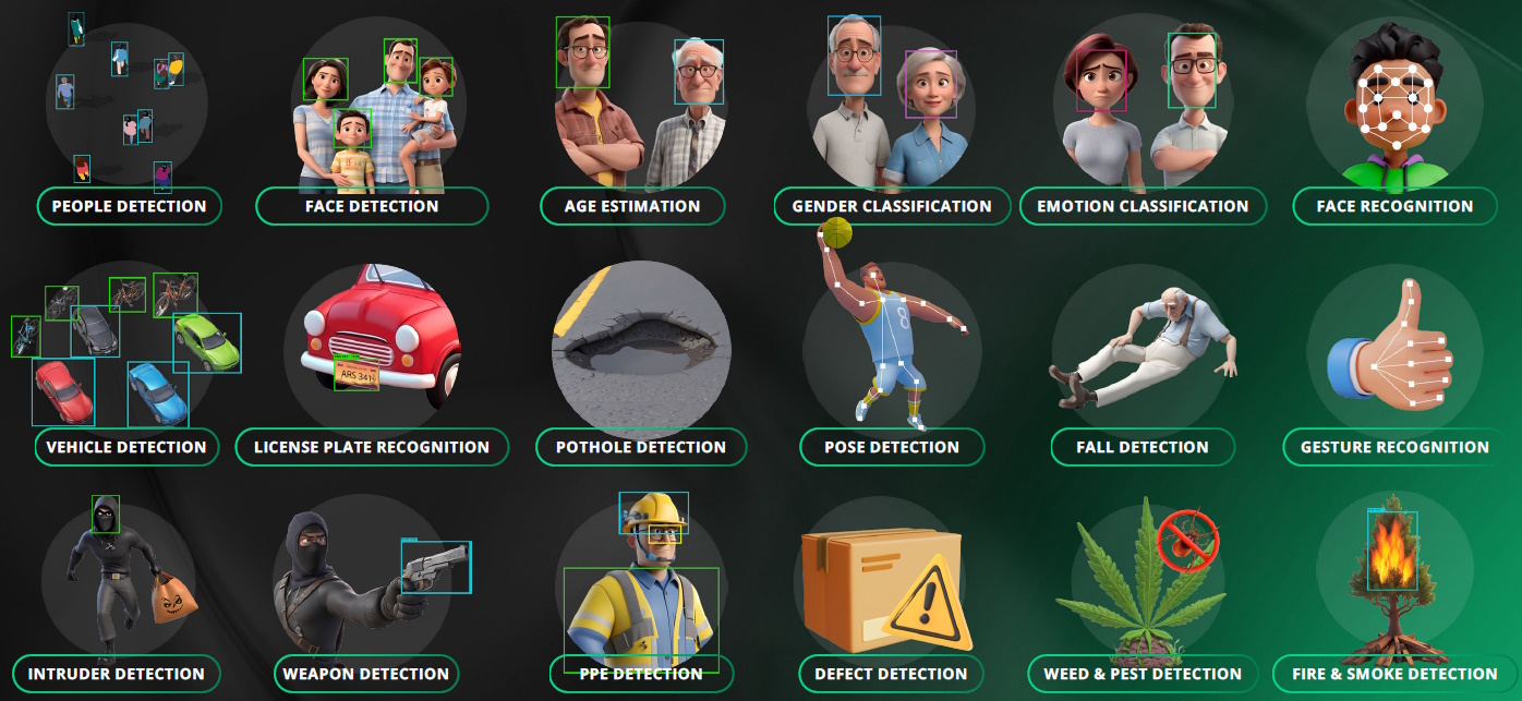 These models can be used to address the AI needs of a vast range of application areas, from retail analytics and digital signage, to smart cities, offices, and homes, to construction, infrastructure, and industrial automation, to… we are limited only by our own imaginations.