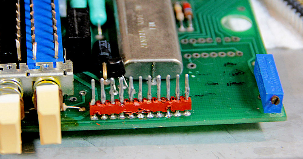 When I pried the meter’s display board from the main board, the situation was ugly. Someone had liberally applied an uneven coating of solder to the connecting pins in an attempt to widen them and fix the intermittent connection. This “fix” had obviously compromised the spring fingers in the female connector. That also explained the obvious bodge wire I’d found running from the main board to the display board, which replicated the function of one pin in the 6-pin display connector. Apparently, that pin didn’t respond well to the extra solder globbed onto the pins, so one of the previous owners of this instrument bypassed the one connector pin with the extra wire. I concluded that the only reasonable solution was to change out the female connectors on the display board and the mating pins on the main board.