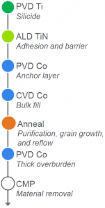 Cobalt seems to be making an inexorable move into more and more applications as device features shrink. It’s largely been replacing tungsten in prior forays: for encapsulating copper and for high-aspect-ratio fill.