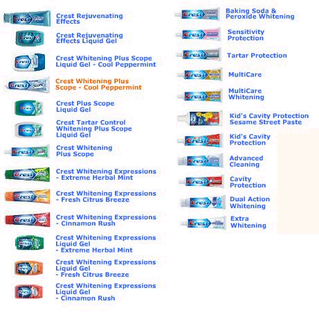 Consider Crest toothpaste. Last time I looked, there were 60 different types of Crest toothpaste for sale (all with five-star reviews), and that’s just in this country. Sixty! I’m no chemist, but I suspect they’re all virtually identical formulas inside the tubes, just with different flavors and different marketing.