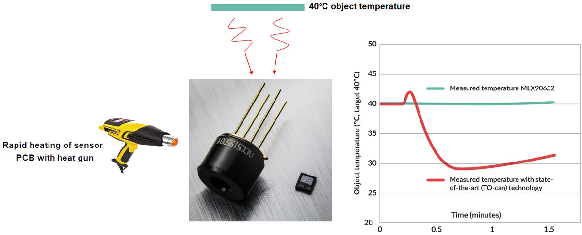 The MLX90632 trounces a standard sensor in this thermal shock experiment (Source: Melexis)