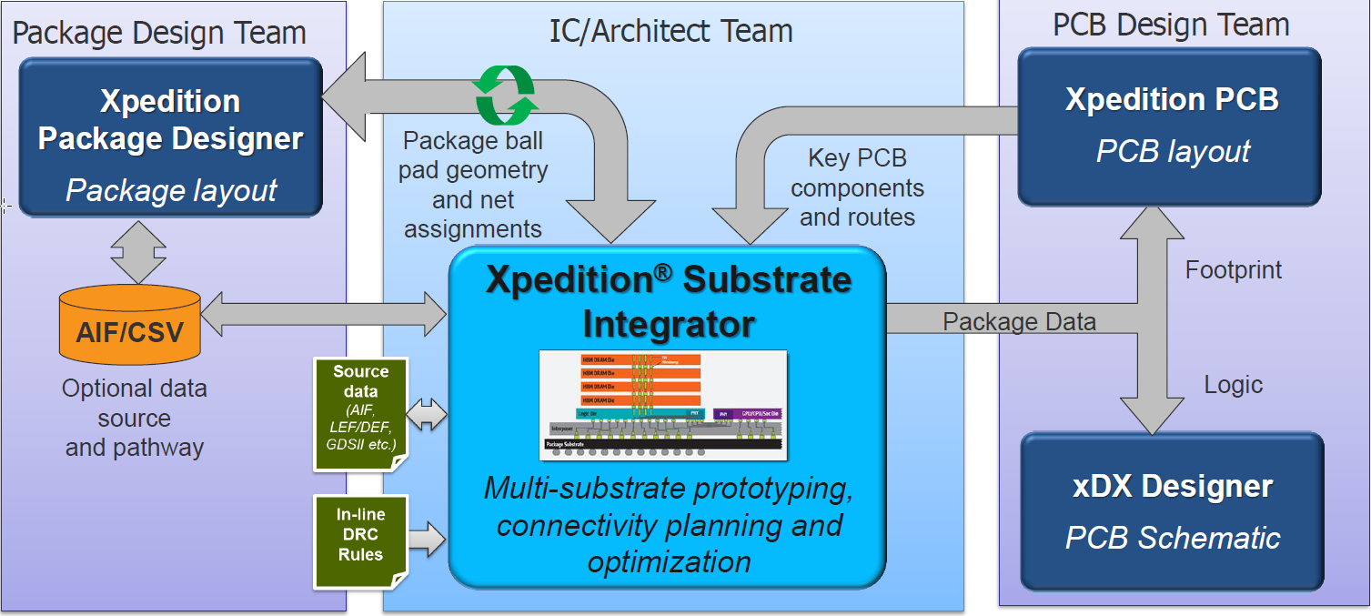 PCBs are, of course, part of this whole deal, but there’s already an Xpedition PCB that ties in with this. The three domains interact as illustrated in the following image.