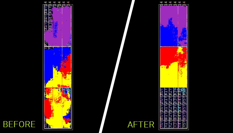 FPGA placement and routing “before” (using existing vendor tools) and “after” (augmenting those tools with InTime) (Image source: Plunify)