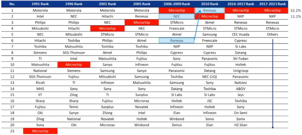 Worldwide 8-bit microcontroller market share from the Gartner 2021 Market Share Report (Image source: Microchip)