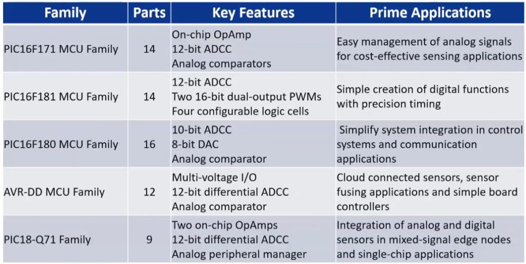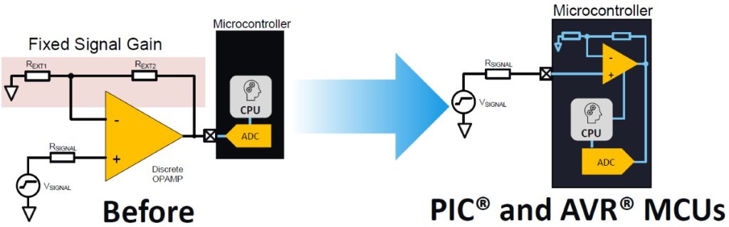 PIC and AVR microcontrollers with internal opamps (Image source: Microchip)