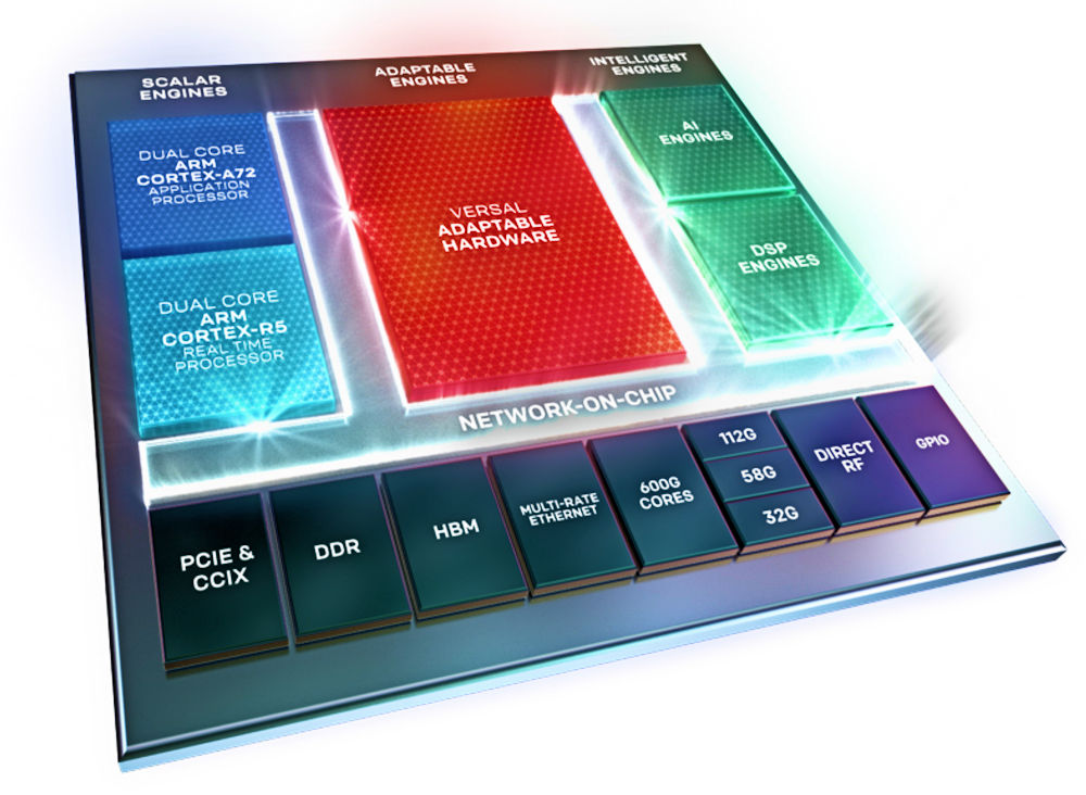 • Scalar Engines: Arm Cortex-72 and Cortex R5 processors. These scalar engines were formerly known as the PS (Processing System) in earlier Xilinx Zynq devices and that term shows up in some Versal ACAP documentation as well.