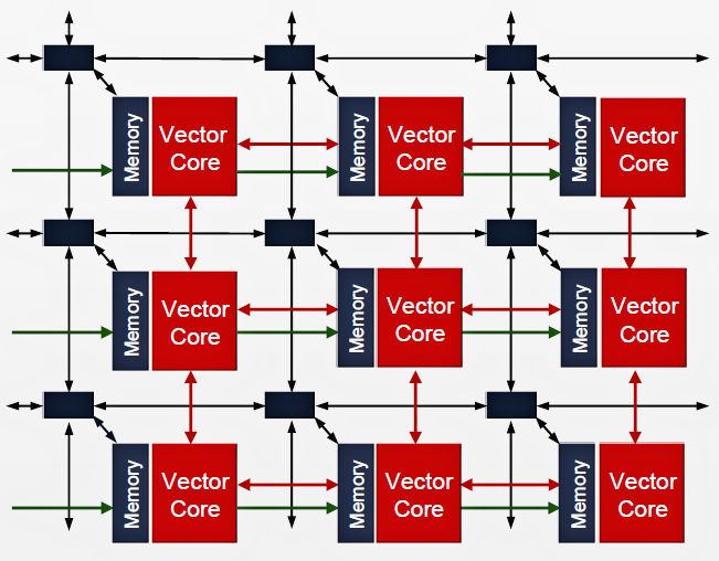 • A pervasive NoC (network on chip) tying all of the engines to the many, many on-chip memories with a high-speed, multi-lane, time-division-multiplexed, on-chip, packet-based network.