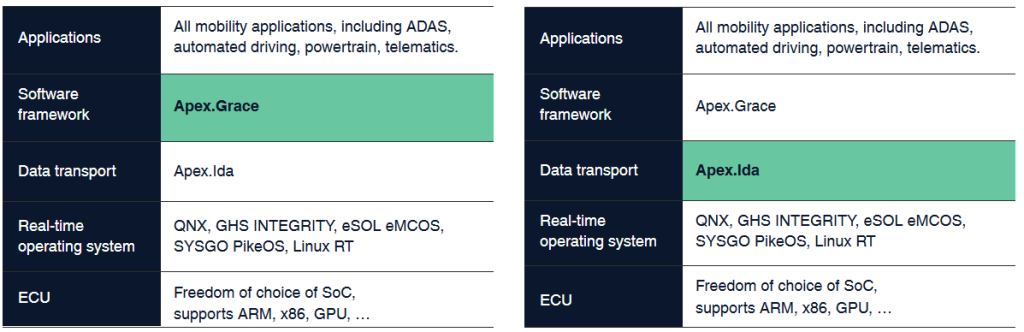 This is what the folks at Apex.AI are doing for mobility platforms in general and for automobiles in particular. They are providing a base layer in the form of Apex.OS, which is a software suite comprising the Apex.Grace SDK and Apex.Ida middleware.