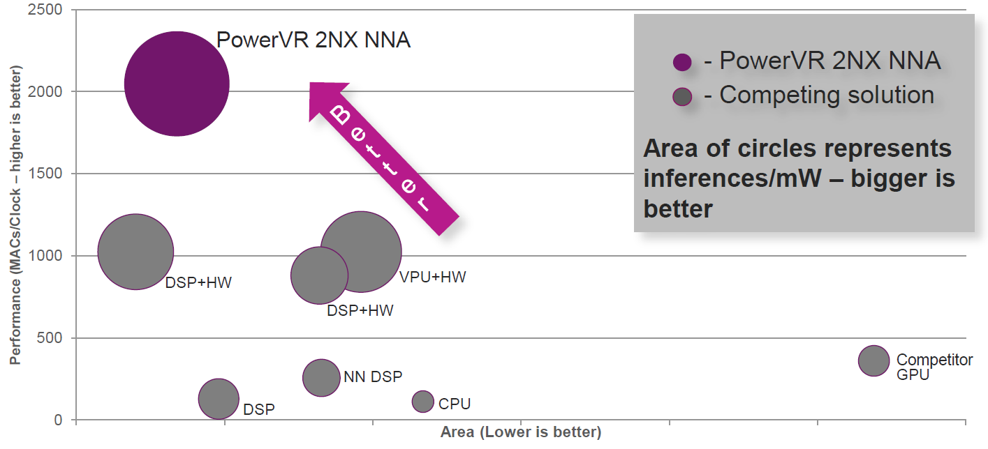 When it comes to performance, power, and area (PPA), IMG put together the following graph. Not surprisingly, it positions their new offering rather favorably as compared to a number of other solutions – both from them and from competitors (unnamed).